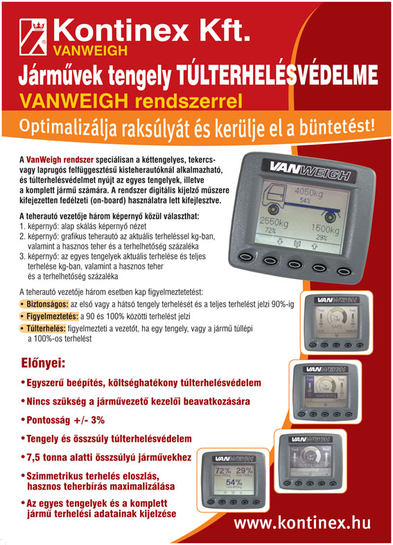 VanWeigh- új VanWeigh - 7,5 tonna alatti össztömegű járművek túlterhelésvédelme
