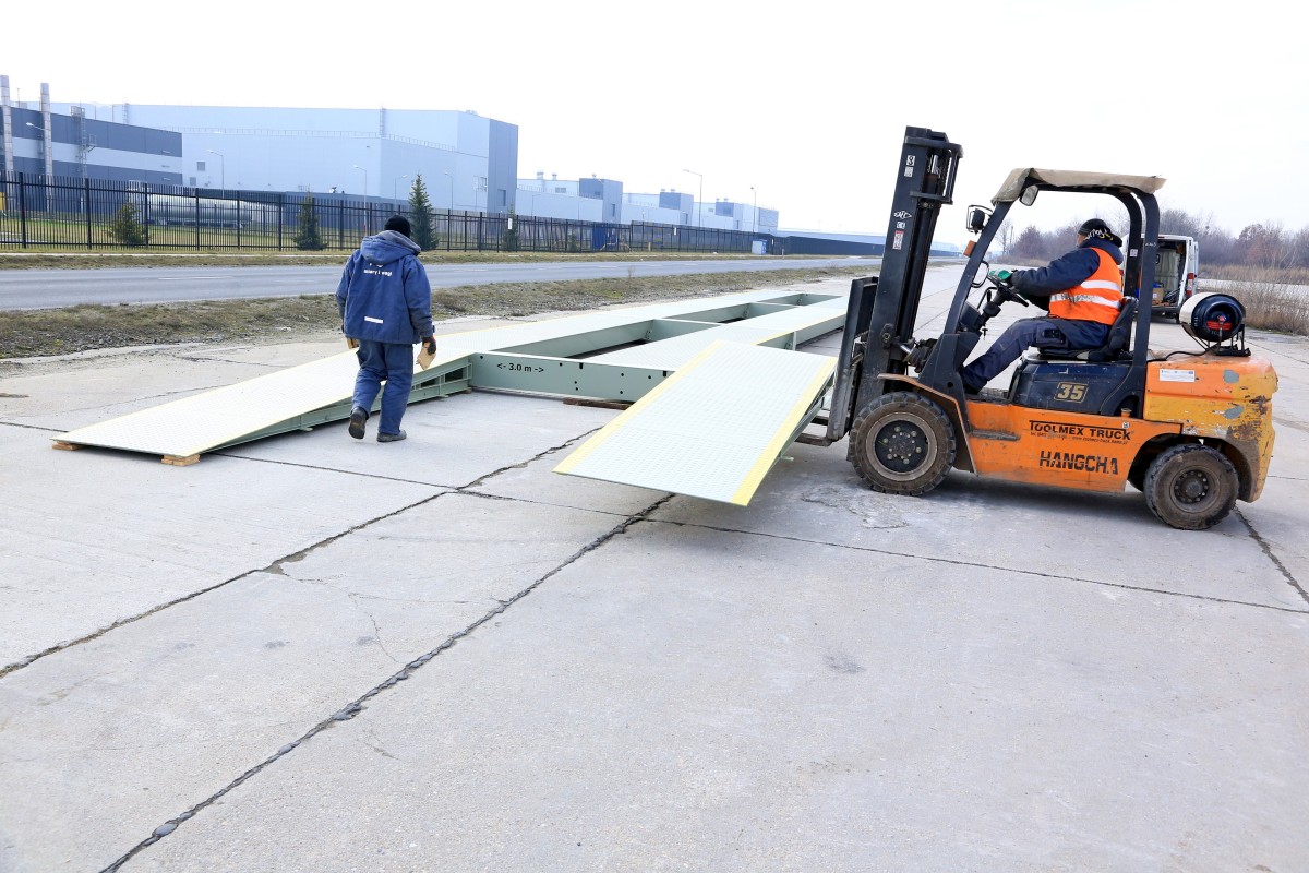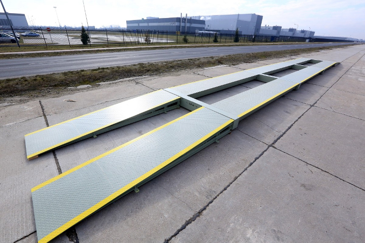 - érdes, csúszásmentes felület, mely megakadályozza a jármű mérleghídon való
