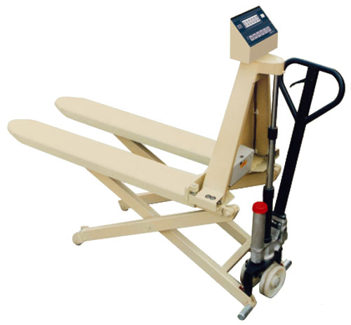 Ipari kivitelű, acélszerkezetes mérleges raklapemelő, masszív villákkal, biztonságos, iparilag